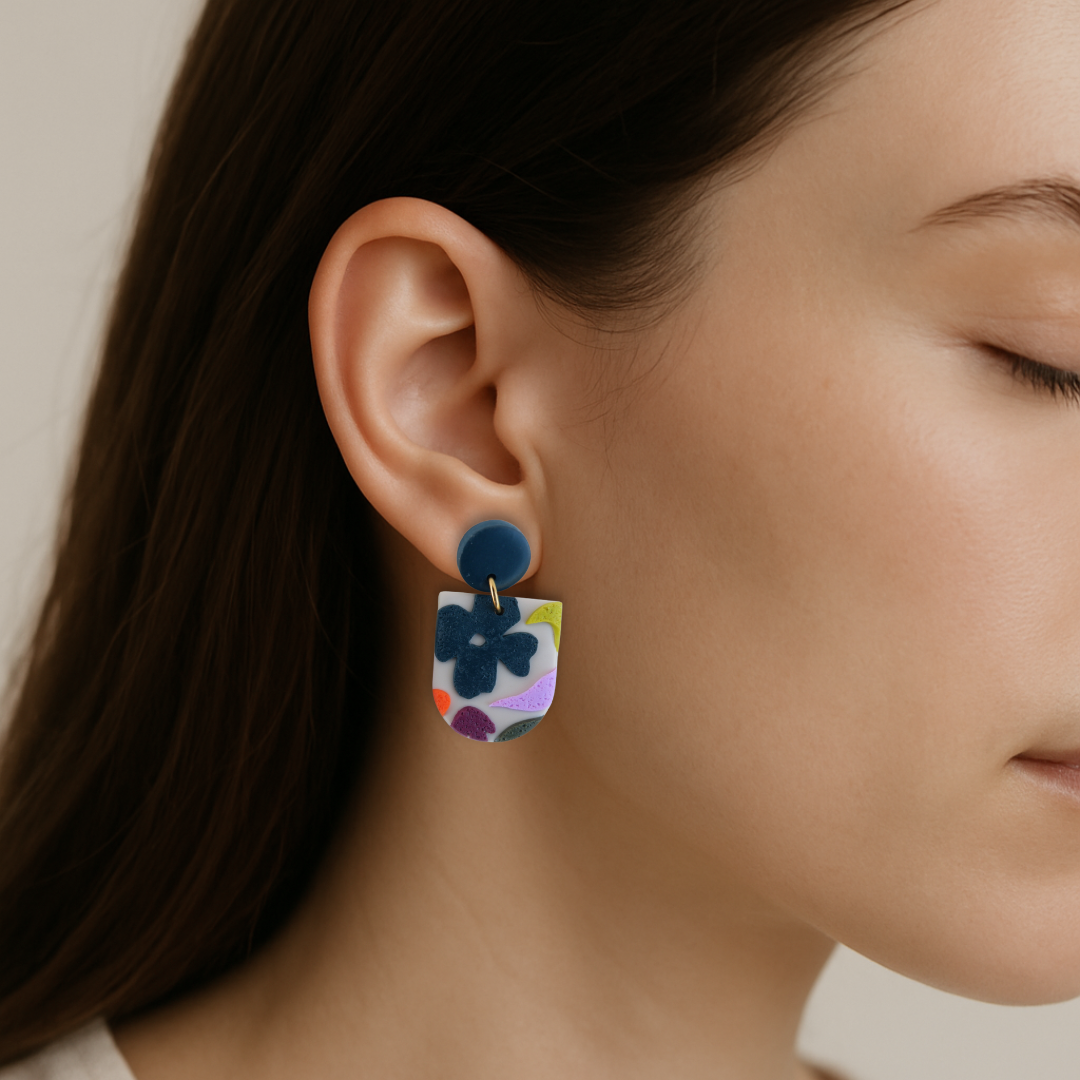 Os brincos são cuidadosamente modelados em argila polímera e incluem bases e argolas em aço inoxidável, um material duradouro, resistente e hipoalergénico, ideal para peles sensíveis.