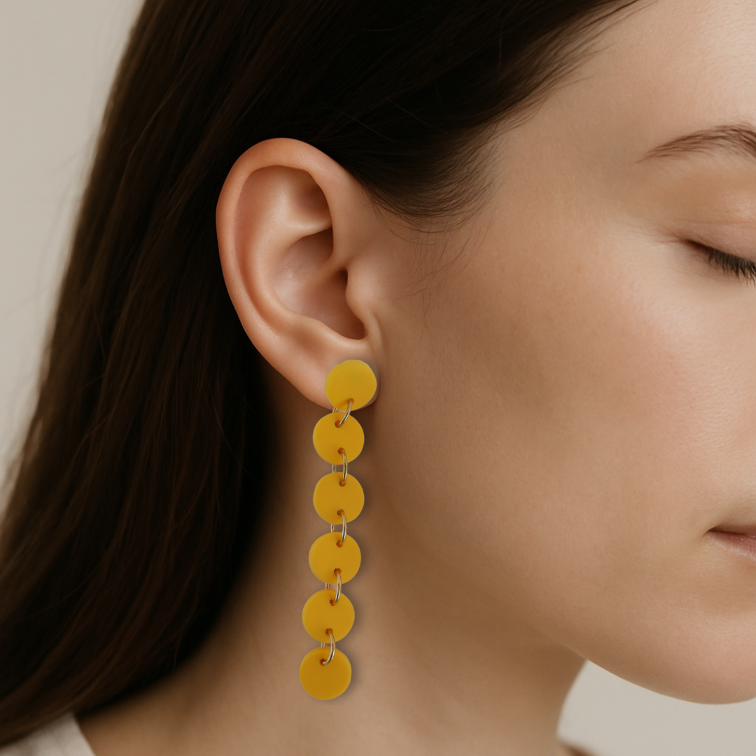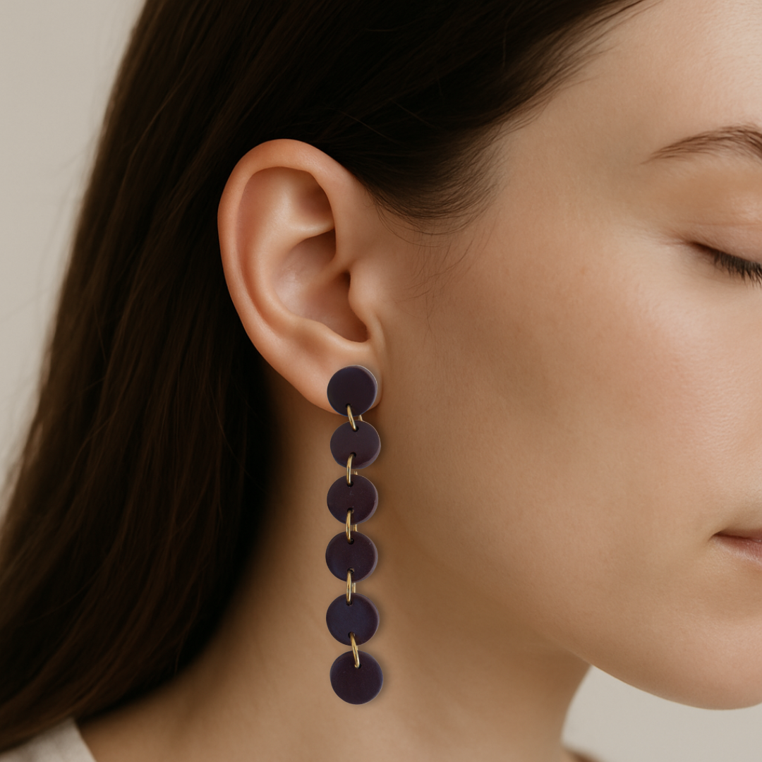 Os brincos são cuidadosamente modelados em argila polímera e incluem bases e argolas em aço inoxidável, um material duradouro, resistente e hipoalergénico, ideal para peles sensíveis.