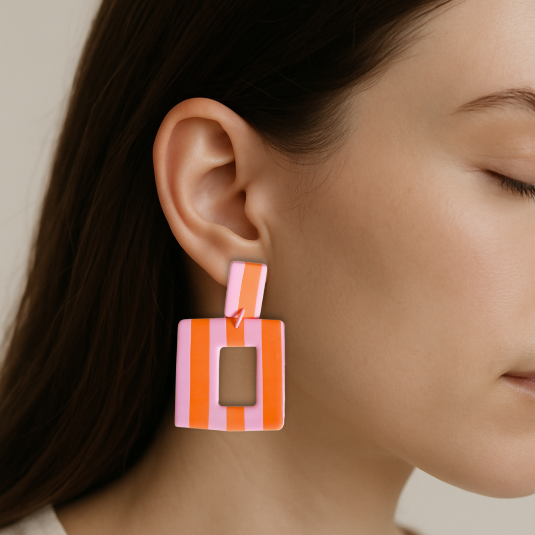 Os brincos são cuidadosamente modelados em argila polímera e incluem bases e argolas em aço inoxidável, um material duradouro, resistente e hipoalergénico, ideal para peles sensíveis.