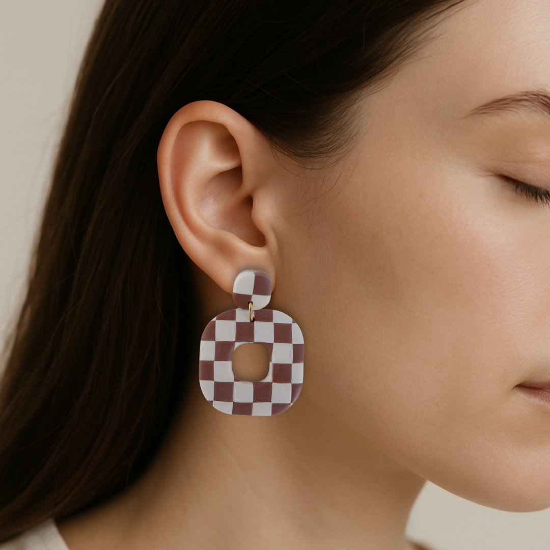 Inspirados no clássico padrão xadrez bicolor, estes brincos combinam contraste e harmonia num design moderno e intemporal.