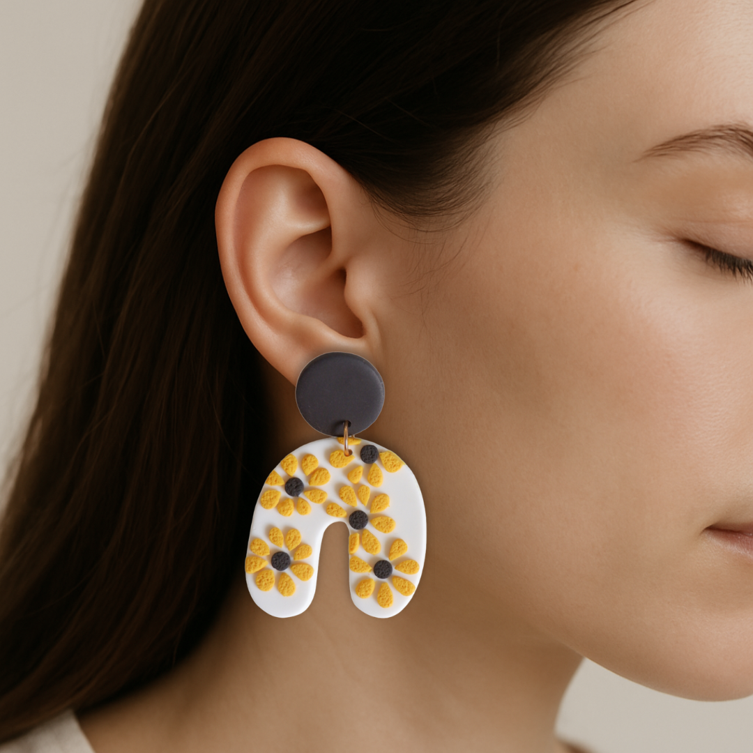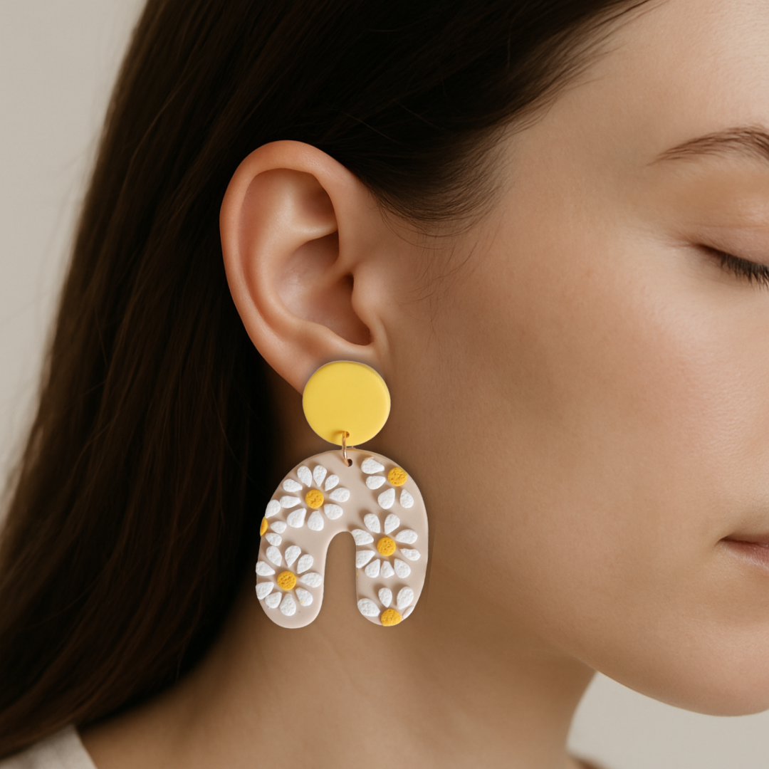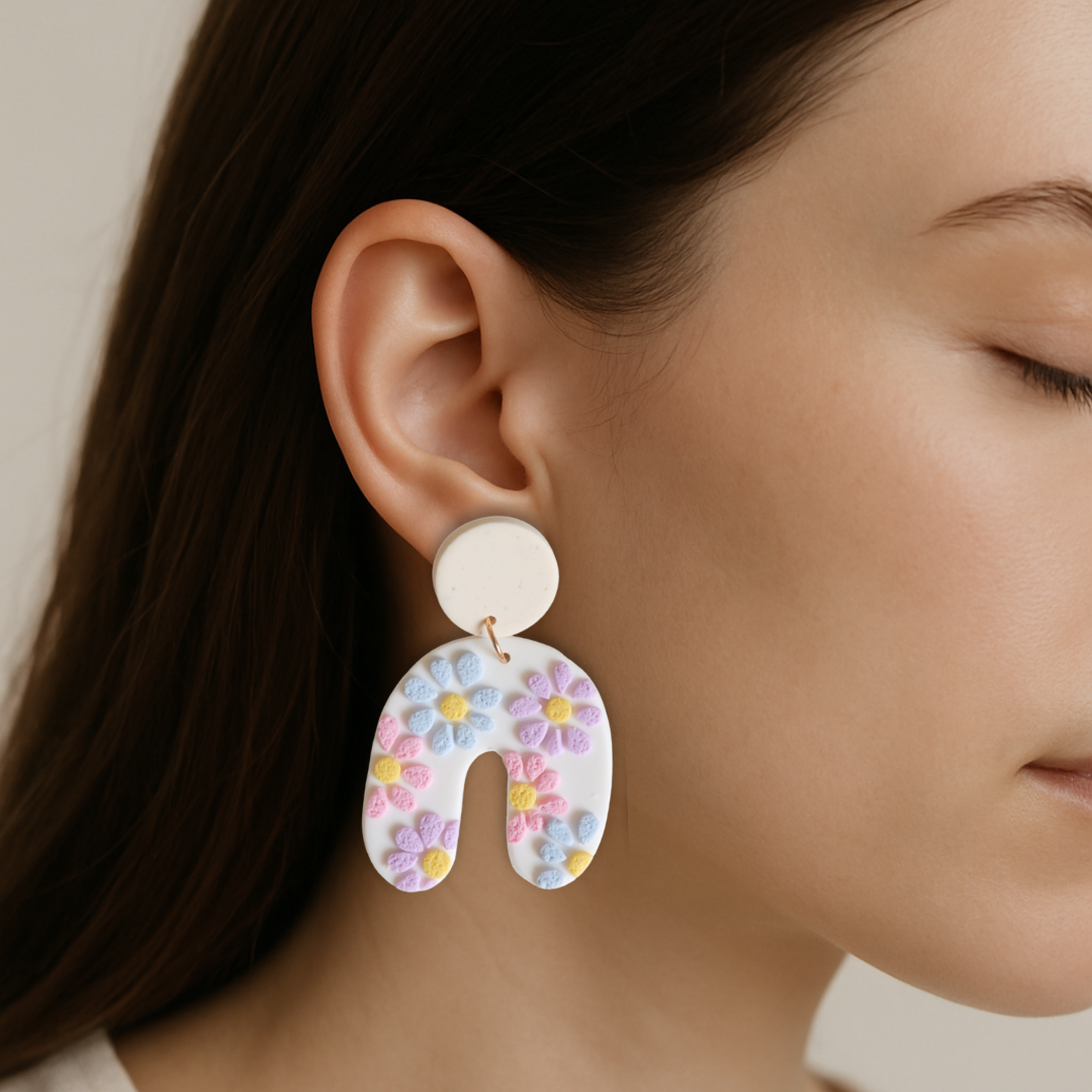 Os brincos são cuidadosamente modelados em argila polímera e incluem bases e argolas em aço inoxidável, um material duradouro, resistente e hipoalergénico, ideal para peles sensíveis.
